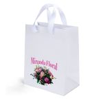 The Elizabeth™ Ribbon-Handle Matte Eurotote is made with matte-laminated paper, grosgrain ribbon handles, a reinforced fold-over top, and a cardboard bottom insert. 7 3/4″ W x 4 3/4″ D x 9 3/4″ H