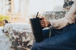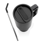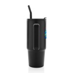Stay refreshed with this 900 ml (30.4 oz.) RCS-certified tumbler made from 70% recycled stainless steel. Double-walled and vacuum-insulated, it keeps drinks at the right temperature while the slim base fits most cup holders. Includes a spill-secure screw-on lid with spout, recycled steel straw, and silicone tip. BPA-free and packaged in a gift box, it’s built for daily hydration with comfort-grip handle. Complies with CPSIA, Prop 65. 3.82″ W x 9.25″ H x 5.79″ L