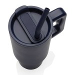 Stay refreshed with this 900 ml (30.4 oz.) RCS-certified tumbler made from 70% recycled stainless steel. Double-walled and vacuum-insulated, it keeps drinks at the right temperature while the slim base fits most cup holders. Includes a spill-secure screw-on lid with spout, recycled steel straw, and silicone tip. BPA-free and packaged in a gift box, it’s built for daily hydration with comfort-grip handle. Complies with CPSIA, Prop 65. 3.82″ W x 9.25″ H x 5.79″ L
