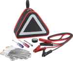The Emergency Auto Kit features a zippered reflective carry case with open storage pocket contains 100-amp jumper cables, flathead screwdriver, Phillips-head screwdriver, rubber electrical tape, rubber friction cotton gloves and a tire gauge. It also has a reinforced top carry handle. Refer to the car manufacture manual for choosing jumper cables with an amperage rating that matches your car’s battery needs to ensure safe and effective jump starting. 5.00″ D x 11.50″ W x 9.25″ H