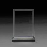 This vertical pane of beveled glass allows your message to be brought to the forefront. This piece is complimented with a black metal base. 8.0″ W x 6.0″ H x 3.0″ D