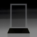 This vertical pane of beveled glass allows your message to be brought to the forefront. This piece is complimented with a black metal base. 4.0″ W x 6.0″ H x 3.0″ D