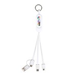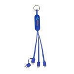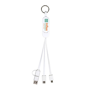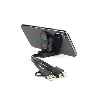 The Escalante Charging cable has dual input charging connectors-standard USB A and USB C-for plugging into power sources and 3 output connectors-USB C, Apple and Micro USB-for charging devices using the Apple and Android operating system (recommended to charge one device at a time). Flip up the hinged support to use as a phone stand while charging. Stretches to 9″ in length. Available with a Spot Color or Full Color Imprint. 9 7/16″ W x 13/16″ H x 3/8″ L