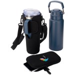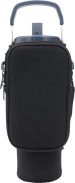 Features detachable zipper pouch and hook and loop closure for handled drinkware styles Easy Neoprene water bottle holder and accessories can be worn crossbody or shoulder style Pouch size measures 7.25H x 4.5W x 0.75D Removeable and adjustable padded strap extends up to 50″ Compatible with Stanley STN20, STN28, STN29 and most Starline 30oz/40oz mugs and tumblers Fits various handle and non-handle style drinkware. 4″ D x 5″ W x 10″ H