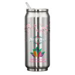 This stainless steel tumbler with screw-on lid and slide-open straw is a twist on the classic beer or soda can. 3.0″ W x 7.0″ H x 3.0″ D