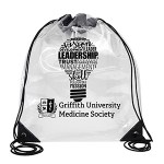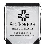 Made of clear PVC material which meets CPSIA and Prop 65 specifications for lead, phthalates and other heavy metals. This useful and practical backpack is ideal for stadiums, events, schools and universities, the workplace, charity walks, all a must. Reinforced corners, strong metal grommets and braided drawstring rope closure prevents tearing and increase bag strength. Has approximately 25″ uncinched handles. Complies with CPSIA, Prop 65. 13″ W x 16″ H