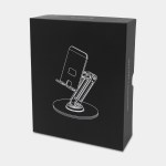 Meet the EVO XL, the next gen, beefed up version of our popular Evo phone stand. This oversized heavy-duty metal stand delivers rock-solid stability, adjustable height, and a smooth 360′ rotating base for the perfect viewing angle every time. Built to hold everything from smartphones to large tablets with ease, it’s the must-have desktop stand. Customize it with our brand in laser etch or full color* print for a premium and lasting impression! Each packed in presentation gift box. 6″ H x 4 3/8″ W x 1 3/5″ L