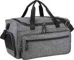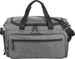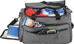 The Excel Sport Club Duffel Bag features a zippered main compartment with bottom board. This custom duffel bag includes a zippered end pocket, perfect for shoes, and a gusseted front pocket. The Excel Sport Club Duffel Bag includes a detachable, adjustable shoulder strap. 11.00″ D x 18.25″ W x 11.00″ H