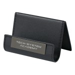 Holds Business Cards, Tablets Or Cell Phones. Leather Look With Metal Plate. Complies with Prop 65. 2.875″ D x 3.5″ W x 2.125″ H