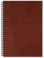 This journal planner has a leather-like material cover that is bonded to a heavyweight board. Please note that foil stamping is not available. Includes 60 Lb. white offset sheets with 14 months (July to August) followed by 50 sheets printed with light gray rules on both sides. Comes wire-O bound on the left side. 7″ W x 10″ H