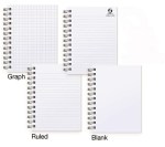 Our Executive Journal features a supple leather-like material bonded to a heavyweight board and 60 Lb. white offset inside sheets with light gray rules or graph printed on both sides. Comes Wire-O bound on the left side. 5″ W x 7″ H