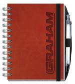 Our Executive Journal features a supple leather-like material bonded to a heavyweight board and 60 Lb. white offset inside sheets with light gray rules or graph printed on both sides. Comes Wire-O bound on the left side with a pen safe back and a pen. 5″ W x 7″ H