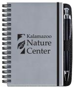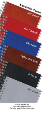 Our Executive Journal features a supple leather-like material bonded to a heavyweight board and 60 Lb. white offset inside sheets with light gray rules or graph printed on both sides. Comes Wire-O bound on the left side with a pen safe back and a pen. 4″ W x 6″ H