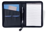 You’re always headed in the write direction with the Executive junior padfolio! Made of simulated leather, this attractive padfolio features a zippered closure, exterior pocket, organizer pockets, pen loop and 5 x 8 paper pad. At 6.75 L x 9 H x .75 W, this professional favor is perfect for any project, business or event. Have your company logo debossed or silkscreened to spread the word on your campaign message now! Complies with CPSIA, Prop 65. 0.75″ W x 9″ H x 6.75″ L