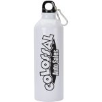 Keep you water cold for hours! Single wall aluminum bottle with threaded lid. For cold beverages only. BPA Free, Food safe aluminum construction. Comes with a carabiner and black gift box. Hand wash recommended. Screen print your logo or massage. Complies with Prop 65.