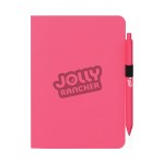 ST4383 Eye Candy Journal Pen Combo, featuring the ST4278 Eye Candy soft cover, non-refillable single meeting journal with 72 ivory lined, perforated pages and a date feature. The journals compact size of 5 1/2″ x 8 1/8″ makes it perfect for conferences. Paired with the color matching G2004 Alix ballpoint pen, which boasts a rubberized barrel and low lead refill, your writing experience will be both comfortable and smooth. This vibrant combo in our Eye Candy colorway ensures style and functionality in every professional setting. ComponentsG1282′,’G2004′,’SC900′,’ST4182′,’ST4278. 5.5000″ L x 8.1250″ W x 0.2031″ H