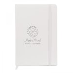 Vinyl hard cover journal with an interior gusseted pocket on back inside cover and 192 ivory lined pages non-refillable. The manual finishing process used to complete the major design element of our Fabriziocollection may result in variations of alignment and thickness of the lines of the contrasting black edge trim. These slight inconsistencies may be apparent within orders of the same style and color and are considered normal.. NOTE When branded, the standard imprint location is centered on the front cover between the spine and the elastic closure. Please specify if you would like the imprint to be centered on the front cover between the spine and the right edge. Journal inner page dimension is 5 1/2″ x 8 3/16″. 5.7500″ L x 8.3125″ W x 0.0000″ H