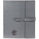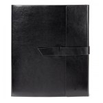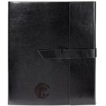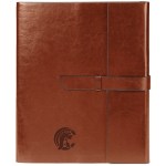 Vinyl portfolio with matching interior pen loop pen not included, brown felt lining and a perfect bound 8 1/4″ x 11″ notebook containing 160 ivory lined pages refillable NOTE The manual finishing process used to complete the major design element of our Fabriziocollection may result in variations of alignment and thickness of the lines of the contrasting black edge trim. These slight inconsistencies may be apparent within orders of the same style and color and are considered normal . 9.75″ L x 11.625″ W