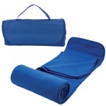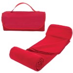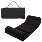 Easy roll-up anti-pilling 180gsm polar fleece/600D polyester blanket with whipstich edging, attached matching hook & loop closure flap with carry handle, and convenient front pocket. Opens up to 54″ x 48″, approximate rolled up size 12″ x 5″ in diameter. Complies with Prop 65. 48″ W x 54″ H x 1/8″ D