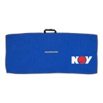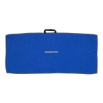 Sustainable 17″x40″ waffle-textured RPET golf towel with a center slit for draping over clubs and a durable hanging loop for easy attachment. Made with 320gsm fabric for superior absorbency and long-lasting use on the course.