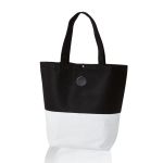 Felt sports tote bag with contrast base- Button lock closure- PE accent patch on either side- High density, lightweight waterproof material base- Recyclable, tear resistant material baseProduct Size: 17″ x 18.5″ x 6″. 17.0″ W x 18.5″ H x 6.0″ D