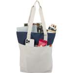 This versatile tote combines style, comfort, and everyday practicality. Crafted from high-quality brushed polyester, it offers a soft, cotton-like feel that’s both durable and lightweight. Designed with functionality in mind, it features a spacious main compartment with a secure snap closure for your daily essentials and a front pocket with a velcro closure—perfect for items you need to access quickly. The interior of both the main compartment and the front pocket is lined with a light grey and. 5.00″ D x 16.00″ W x 15.50″ H