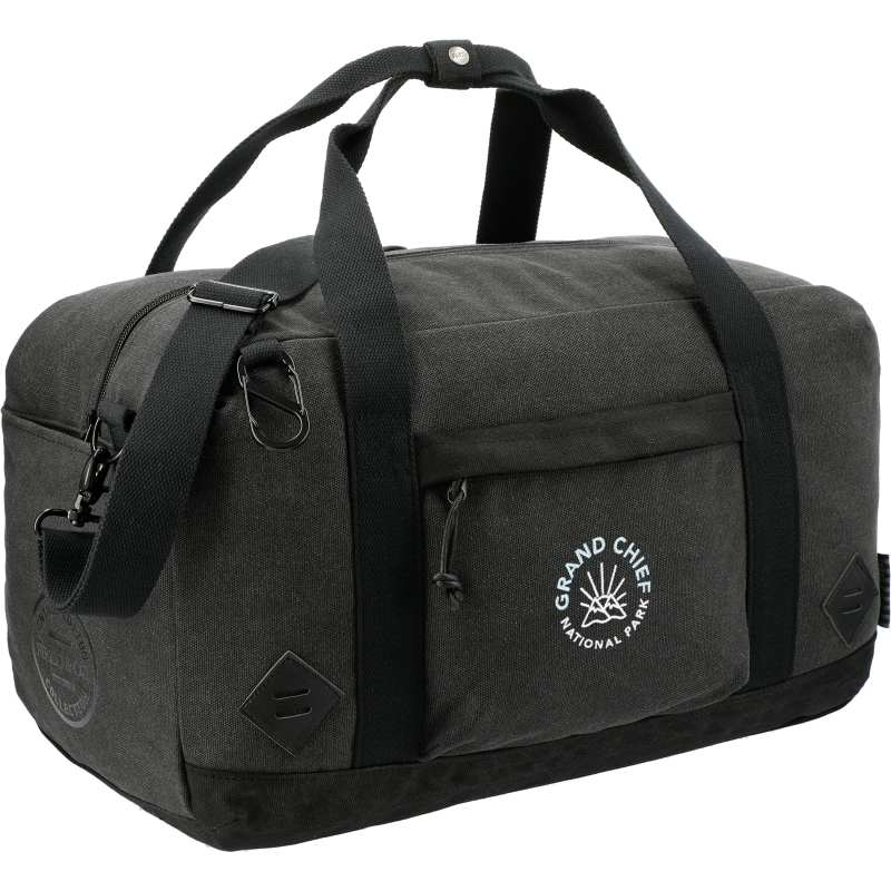 The Field & Co. Woodland Duffel is made from sturdy cotton canvas and features custom wood grain lining. This specialty duffel bag includes a spacious zippered main compartment, zippered front accessory pocket, and a removable carabiner to hold keys or favorite camp mug. This custom duffel includes two premium diamond lash tabs to attach additional carabiners. The Field & Co. Woodland Duffel features a removable, adjustable shoulder strap and webbing grab handles. 9.00″ D x 19.50″ W x 12.00″ H