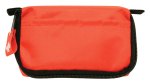 This 5 3/4″ x 3″ polyamide nylon pouch has a zippered closure and a strap ring to attach to a key ring, purse or backpack. Inside you’ll discover a triangular bandage, 1 non-woven pad, three alcohol preparation pads, 1 elastic compression bandage, 4 adhesive bandages, 2 safety pins and a pair of miniature scissors. The red design features standard First Aid insignia on the strap. 5 3/4″ W x 4″ H
