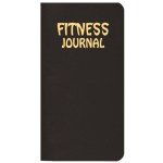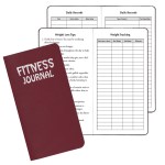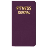 Fitness information journal, Leatherette cover, saddle stitched, fitness goals, weight loss tips, body measurements, daily/weekly exercise charts, calorie needs, calories burned. 3 1/2″ W x 6 1/2″ H