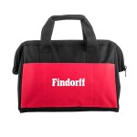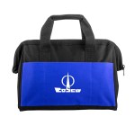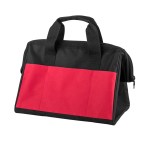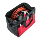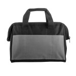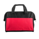 Sturdy work bag made with 600D poly material perfect for storing and transporting hand and power tools. Three exterior pockets; internal framing; and bottom webbing strap reinforcement for durable strength. 8.5″ D x 9.5″ H x 13.75″ W