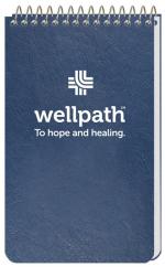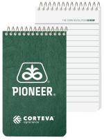 This notebook features a leatherette cover and 50 Lb. white offset ruled sheets that are custom printed on 1 side of each sheet in 1 standard color. Comes coil bound on top. 2 7/8″ L x 4 3/4″ H
