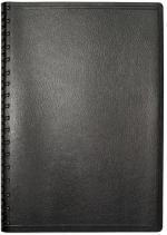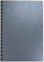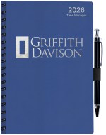 This calendar planner features a flexible leatherette or textured paper cover with 2 round corners. Metro covers are available for blind debossing or foil stamping. Inside sheets are made from 60 Lb. white offset paper and include 14 months (December to January), monthly and weekly views pre-printed in blue and gray with reference pages, and a white double pocket inserted in the back. Comes with semi-concealed black Wire-O binding on the left side. 5″ W x 8″ H