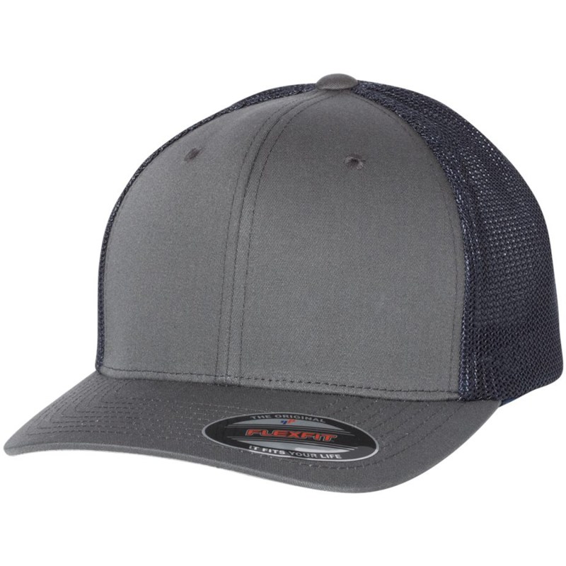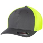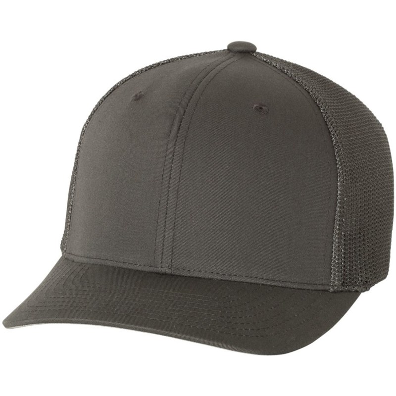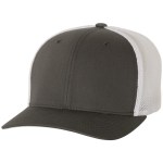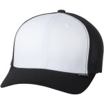 55/43/2 polyester/cotton/spandex. Structured, six-panel, mid-profile, 3 1/2″ crown. Sewn eyelets. Permacurv visor with silver undervisor