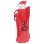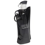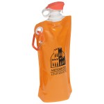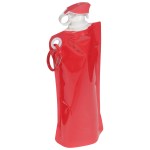 Flip Top Foldable Water Bottle with Carabiner is made from PE+PA(Nylon)+PET, holds 27 ounces, and has easy to use flip open top and is freezer safe. Hand wash only. Complete with large color coordinated cap and carabineer clip. BPA free and FDA certified. Complies with FDA, Prop 65. 12″ W x 5.5″ H