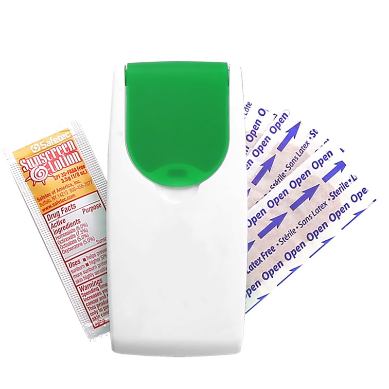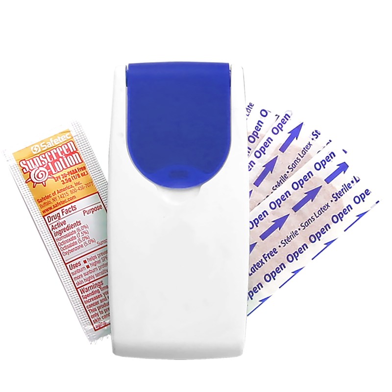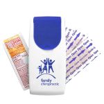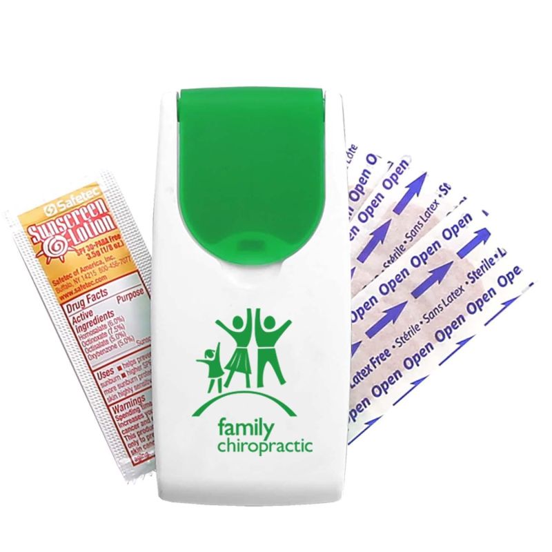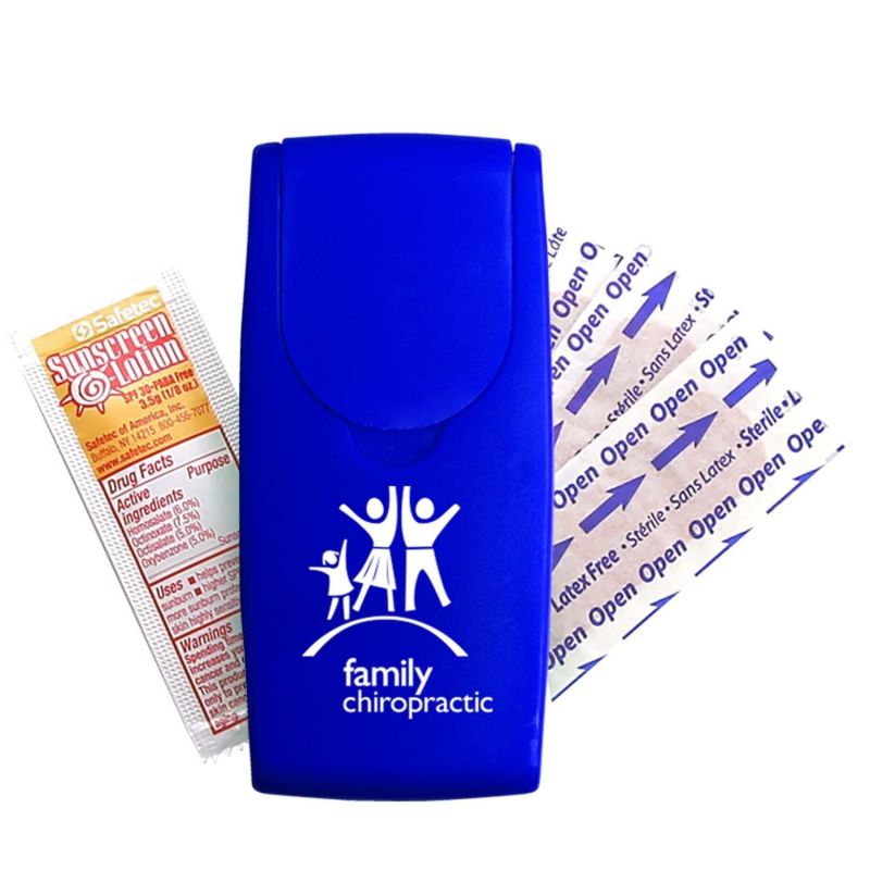 When you have an outdoor event coming up these flip top sun kits will come in quite handy! With a sleek and colorful design these first aid containers include 2 sunscreen packets and 2 adhesive bandages Imprint with your company name or logoA creative promotional giveaway to give out at medical conventions and awareness campaignsGreat for hotels. schools and travel agencies too! Complies with ANSI, CPSIA, FDA, Prop 65. 4 3/8″ H x 2.0625″ W x 0.5″ D