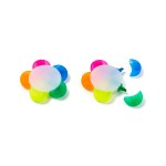 Each of the five flower petals contain a highlighter color to match the cap: pink, blue, yellow, green and orange. Complies with CPSIA, Prop 65. 4″ Diameter x 1/2″ Thick