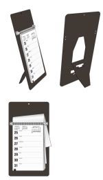 This calendar features a heavyweight paperboard back with a die cut easel back, a metal reinforced eyelet for hanging, and a durable single rod design to prevent breakage. Calendar sheets start on Monday and each includes a week at a glance view with room to write. Back of all sheets are lined for note taking. Save calendar pages and notes for future reference by flipping the page over the plastic bar. 7″ L x 13″ L
