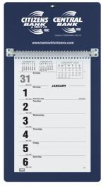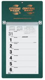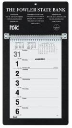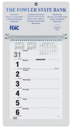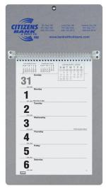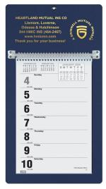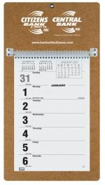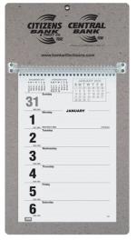 This calendar features a heavyweight paperboard die cut easel back with a metal reinforced eyelet for hanging and a durable single rod design to prevent breakage. Calendar sheets start on Sunday and each includes a week at a glance view with room to write. Back of all sheets have miscellaneous information. Save calendar pages and notes for future reference by flipping the page over the plastic bar. 7″ W x 13″ H