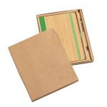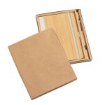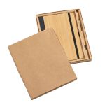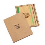 The Forleo Bamboo Notebook/Lucky Pen Gift Set pairs an eco-friendly bamboo notebook with the sleek bamboo-barreled Lucky Pen for a stylish, sustainable writing experience. Presented in an elegant black die-cut foam gift box, the set highlights the notebook’s FSC-certified recycled pages, elastic closure, pen loop, and tassel bookmark alongside the pen’s gunmetal accents. This premium presentation makes it an ideal gift for clients, employees, or anyone who appreciates thoughtful, eco-conscious design. 5.5″ W x 8.25″ H