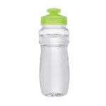 24 oz. clear water bottle is made from PET and features a contoured body with textured grip and wide mouth opening making it easy to clean and add ice. The polypropylene lid is available in 6 colors and has a flip-open drinking spout. Complies with Prop 65. 3 1/16″ W x 8 7/8″ H x 3 1/16″ D