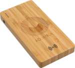 The FSC® 100% Bamboo 5000 mAh Wireless Power Bank has a rechargeable lithium polymer battery (18.5Wh) that works as a wireless charging pad or a normal power bank on the go. Dual USB-A Outputs: 5V/2.1A max. Supports wireless charging at up to 5W for devices including (but not limited to):All iPhone 8/X/11/12/13/14/15 Series * Samsung Galaxy S9/S9 Plus/S8/S8 Plus/Note 8/9 and more. Works with any smartphone or tablet, even ones without wireless technology, using the normal power bank capabilities. Works with most plastic phone cases on. Includes a 13.7” Micro to USB-A charging cable. Due to the nature of the bamboo material, variations in laser imprinting quality may occur. Power banks are permitted in carry-on luggage only, and at the discretion of TSA agents. Please charge power bank before initial use. Comes packaged in a FSC®-certified premium gift box. 1% of sales support environmental nonprofits via 1% For The Planet partnership. 5.59″ D x 2.83″ W x 0.59″ H