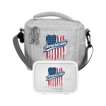 Introducing the Adventure Line Cooler featuring a vibrant and eye-catching shoulder strap for added style and convenience. Pair it with the Full Color Lunch To Go Container which boasts a secure clip top lid for a hassle-free dining experience on-the-go. Elevate your lunchtime routine with these versatile and practical accessories that are sure to stand out in any setting. Complies with FDA, Prop 65. 8.5″ L x 7.25″ H x 6.25″ W