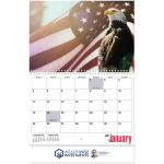 Imprinted Wall Calendar Showcases Amerian Beauty! 13 month wall calendar from December to December with large blocks for writing notes. Show your American pride by sharing this wall calendar knowing it is Proudly Made in the USA. Features spiral binding. High quality gloss paper with UV coated cover. Eco-friendly and Recyclable. Made from 10% post-consumer waste. Complies with Prop 65. 11″ W x 9.5″ H