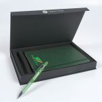 The Bella Luna Journal and Ultima Pen Gift Set: Where Style Meets Functionality! Personalize your professional accessory with a custom full-color message that makes a lasting impression. The stylus pen offers smooth writing and touch screen compatibility, perfect for modern professionals who value both form and function. Luxurious faux leather hardcover journal with 160 ruled pages. Convenient ribbon page marker and back cover document pocket. Complies with Prop 65.