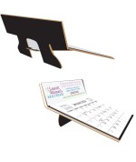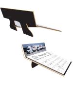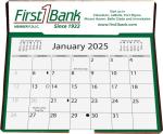 This calendar has a die cut, easel back, 80 Lb. coated cover with a gloss coat and is mounted to heavy black chipboard back. Designed for table or desk use. It features 13 months, starting in December, printed in black ink only on white offset sheets. Includes American holidays and moon phases. Calendar pad size is 6″x 4 ½”. An additional imprint area is available: 6 7/16″x 1 ½” on the back panel. 6 1/4″ W x 6 3/8″ H