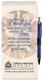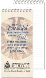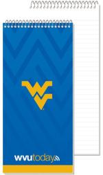 This notebook features a white flexible cover with clear coat on outside front and 18 Lb. white tablet bond sheets with light blue 11/32″ wide rules on both sides. Please note that an imprint is not available on inside sheets. Comes coil bound on top. 4″ W x 8 1/4″ L