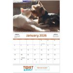 A Cute and Comforting Promotion! 13 month wall calendar from December to December with large blocks for writing notes and a 3 year calendar on the back cover. Adorable full color photos of cats, kittens, dog and puppy friends. Features spiral binding. High quality gloss paper with UV coated cover; Eco-friendly and Recyclable. Made from 10% post-consumer waste. Add your company name and logo and see a realistic product preview of your imprint. Complies with Prop 65. 11″ W x 9.5″ H