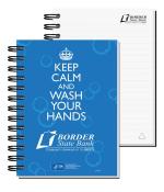 Our Impression Journal features a white 15 pt. front cover with a protective gloss coating and a durable, thick 50 pt. stock black back cover unless otherwise specified. Includes 80 pages of recycled 60 Lb. white offset inside sheets with black logo and rules, graph, or euro dot printed on the front of each sheet. Recycled symbol is printed in the lower right corner and the back of each sheet is blank. Comes Wire-O bound on the left side in black with a 3 year calendar insert. 5″ W x 7″ H