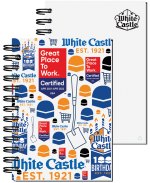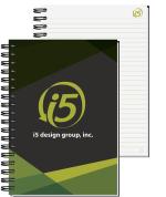 Our Impression Journal features a white 15 pt. front cover with a protective gloss coating and a durable, thick 50 pt. stock black back cover unless otherwise specified. Includes 80 pages of recycled 60 Lb. white offset inside sheets with black logo and rules, graph, or euro dot printed on the front of each sheet. Recycled symbol is printed in the lower right corner and the back of each sheet is blank. Comes Wire-O bound on the left side in black with a 3 year calendar insert. 7″ W x 10″ H