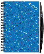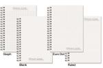 Our Impression Journal features a white 15 pt. front cover with a protective gloss coating and 80 pages of recycled 60 Lb. white offset inside sheets with black logo and rules, graph, or euro dot printed on the front of each sheet. Recycled symbol is printed in the lower right corner and the back of each sheet is blank. Comes Wire-O bound on the left side in black with a pen safe back, pen, and 3 year calendar insert. 7″ W x 10″ H